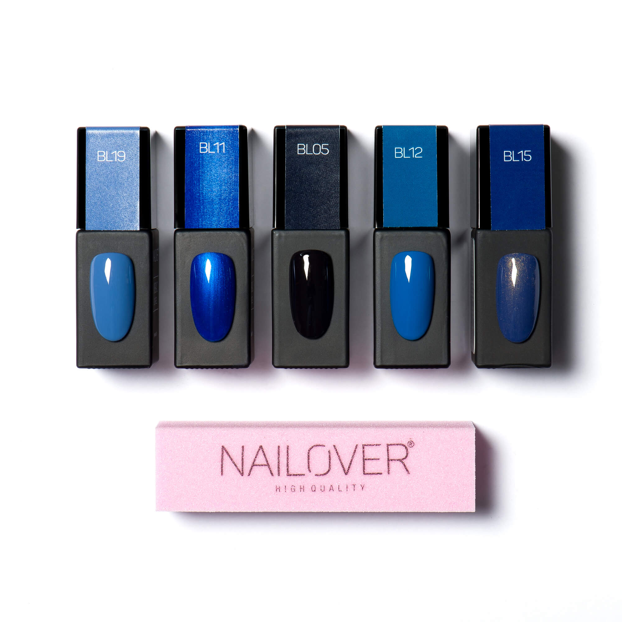 Το προσωπικό της Nailover επέλεξε αυτές τις 5 αποχρώσεις του μπλε για να προσφέρει στους πελάτες ευέλικτες και εκλεπτυσμένες λύσεις για όσους θέλουν να στολίσουν τα χέρια τους με μπλε. Από το midnight blue του BL05 έως τις πιο ανοιχτές αποχρώσεις των BL11 και BL12, θα βρείτε ενδιαφέροντα και εκλεπτυσμένα χρώματα, για να αναδείξετε μαζί ή μεμονωμένα με την κομψότητα που μόνο το μπλε χρώμα μπορεί να δώσει. Ως τελευταίο συμπλήρωμα έχουμε συμπεριλάβει το Soft Pink Buffer, ένα απαραίτητο εργαλείο για το καλύτερο φινίρισμα της εργασίας σας.