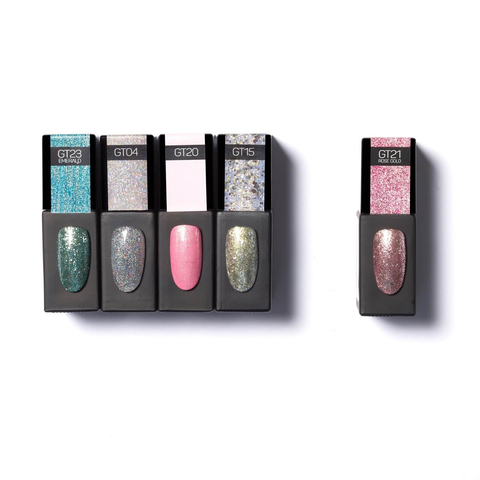 5 χρώματα με φωτεινό και κομψό micro full glitter για επίδειξη σε ειδικές περιστάσεις.